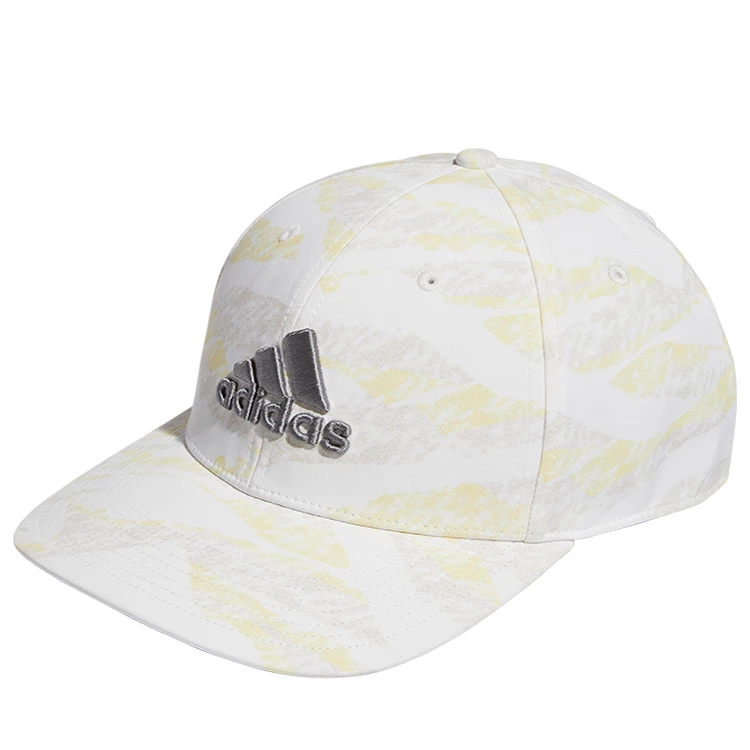 | adidas Tour Print Snapback Golf Cap Adjustable Design With All-Over Graphic Print The adidas Tour Print Snapback Cap is a stylish item with an adjustable design offering protection from the sun with added breathability. Featuring a soft feel and a pre-curved brim with a woven adidas logo on the front. – Graphic Print With adidas Logo – Primegreen Series Using Recycled Materials – Adjustable One Size Fits All – Six Panel Construction With Pre-Curved Brim – Soft Lightweight Fabric – AEROREADY Moisture Sweatband – UPF 50+ Sun Protection – 97% Recycled Polyester, 3% Elastane |