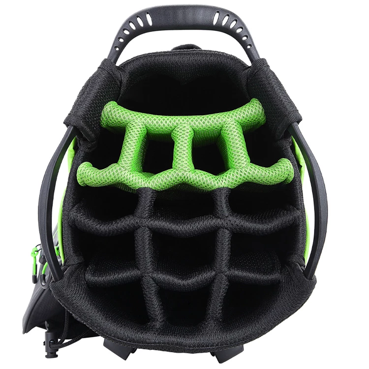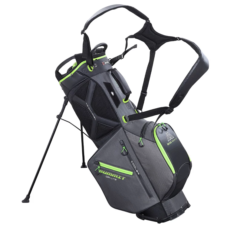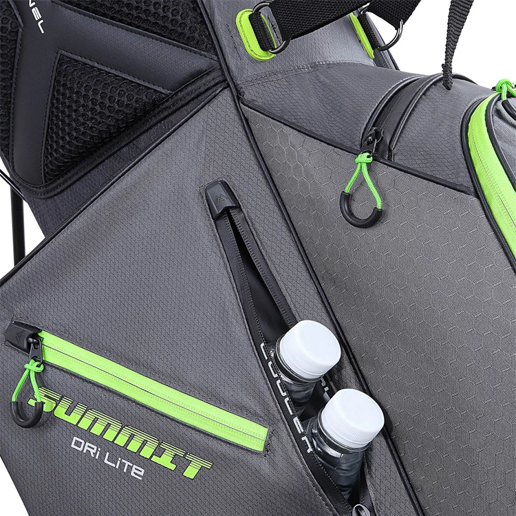 | Big Max Dri-Lite Hybrid Summit Golf Stand Bag Water Resistant With Maximum Organisation The new Dri-Lite Hybrid Summit is an ultra-lightweight stand-bag with a 14-way organizer top for every golfer with high expectations. This new model delivers an added performance layer with waterproof zippers and fabric, also it is highly comfortable to wear. A 14-way organizer top and 7 pockets offer a lot of space for all your belongings, also these pockets include a dedicated cooler pocket, as well as dry pockets for your valuables. The 14-way organizer top allows you to organise your clubs by length. This prevents the clubs from knocking against each other, keeping them protected from damage and minimising noise. All your clubs neatly stored and to hand, ready for the next shot. Thanks to the integrated cooler pocket, you can keep your drinks and food cold, and the bag dry. Always have a cool drink to hand during a sunny round of golf. A glove and towel holder make sure you have you keep everything necessary in place, while you reach for it. The Dri-Lite Hybrid is very lightweight with only 2 kg. |