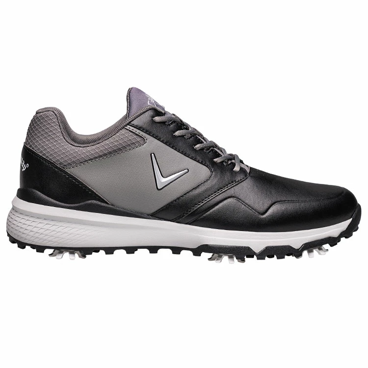| Callaway Chev LS Golf Shoes Fully Waterproof With Soft Leather Upper The Callaway Chev LS golf shoes deliver high performance, instant comfort, and great value. A soft leather upper with PU and mesh panels offers a great look and feel. While the new lightweight rubber unit with uphill & downhill traction elements incorporates the PINS system Big Bertha® Power Cleat for traction and stability. The shoe also features high shock absorption properties with a new external heel support structure. Callaway golf shoes provide exceptional comfort with waterproof performance. |