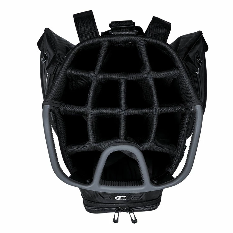 | Callaway Org 14 Golf Cart Bag Feature Loaded Design With 14 Way Dividers A best selling premium trolley bag, the Org 14 Cart Bag is designed to fill all requirements the cart bag player needs with premium performance. Featuring a new 14 way graphite friendly divider system with 14 full length dividers and separate TPE putter well. The Org 14 Cart bag offers exceptional club organisation while the ‘E’ trolley friendly base allows the bag to fit perfectly on either pull or electric trolleys. The bag features 11 pockets which include and range of velour lined valuables pockets, front facing molded rangefinder pocket, insulated cooler pocket, full length pockets & more. An extremely well designed bag with integrated putter section, umbrella sleeve, glove, towel attachment and grab handles. The Callaway Org 14 Cart Bag is one of the most stylish and functional cart bags with luxury design. |