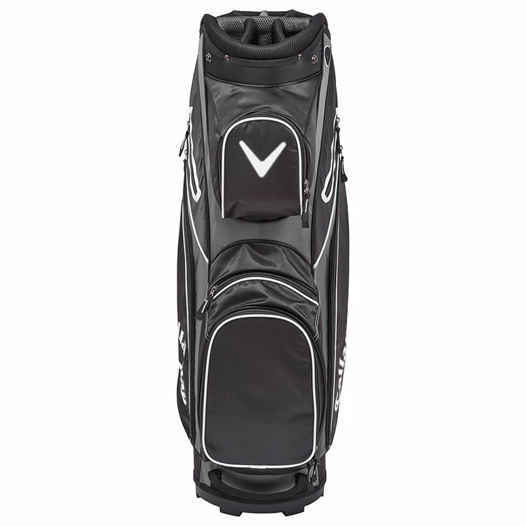 | Callaway X Lite Golf Cart Bag Lightweight Design With Exceptional Value A best selling lightweight trolley bag, the X Lite Cart Bag is designed to fill all requirements the cart bag player needs with lightweight performance. Featuring a new 14 way graphite friendly divider system, the X Lite Cart bag offers exceptional club organisation while the ‘E’ trolley friendly base allows the bag to fit perfectly on either pull or electric trolleys. The bag features 7 pockets which includes a valuables pockets, rangefinder pocket, full length pockets & more. An extremely well designed bag with an integrated umbrella sleeve, towel loop and glove patch, the Callaway X Lite Cart Bag is one of the most stylish and functional cart bags with lighter weight design. |