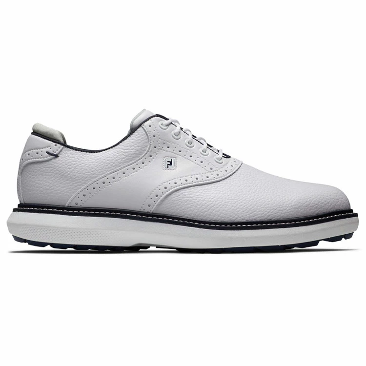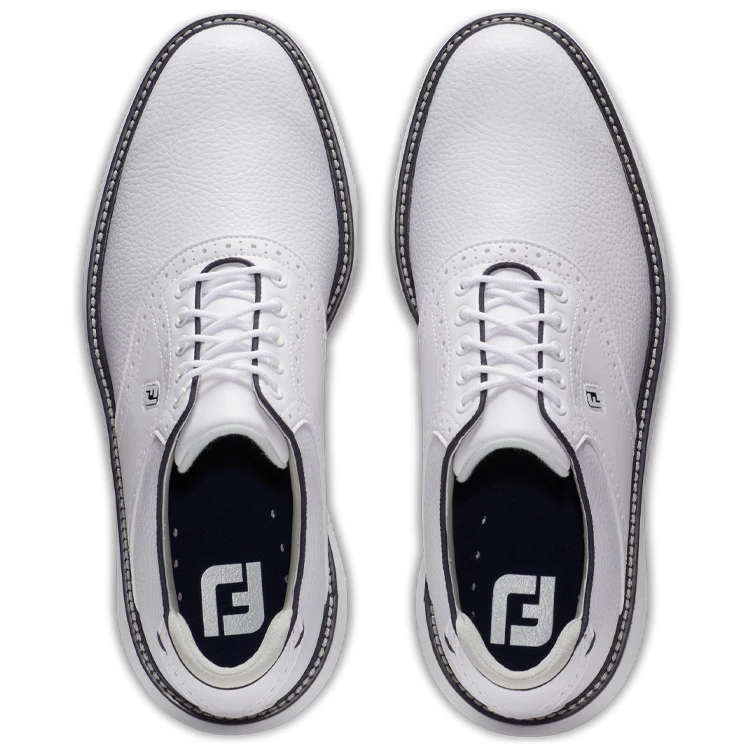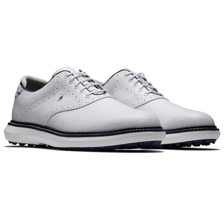 | FootJoy FJ Traditions Spikeless 57927 Golf Shoes Spikeless Comfort In A Modern Classic Style FootJoy FJ Traditions offer complete traction and can be easily maintained round after round. Lightweight comfort and super-cushioned foam deliver an incredibly flexible and comfortable ride. The super-cushioned foam underfoot will keep you comfortable and supported throughout the entire round, and built in achilles pad ensures a perfect no-slip fit. 100% waterproof, a full grain leather provides a soft and easy to clean upper with 1 year waterproof protection. The VersaTrax outsole is engineered with traction elements to create an outsole that is perfect for on course performance with wear-to-the course versatility. Clean and iconic, the FJ Traditions Golf Shoes offer the perfect blend of classic design with modern performance. |