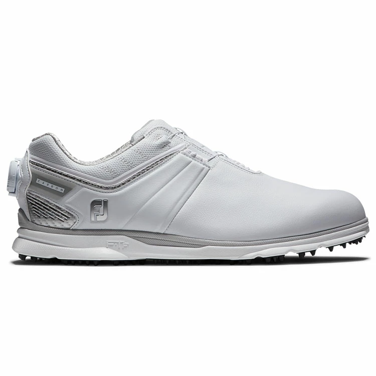 | FootJoy Pro SL Carbon BOA 53085 Golf Shoes Precision Fitting With BOA Lace System The brand new FootJoy Pro SL Carbon BOA is the ultimate players spikeless shoe that combines a soft and comfortable waterproof upper with a midsole/outsole unit that also features Carbon Fibre for tour level stability. This all comes courtesy of a proprietary polymer outsole material called Fine-Tuned Foam (FTF), which is 10% lighter than conventional EVA foams and provides enhanced cushioning and shock absorption for added comfort. Comprised of three layers of different densities fused together, FTF is the key material to ensure that Pro SL delivers comfort and stability. The top layer that cradles the foot is a softer durometer to provide all day comfort, while the lower portion is firmer to deliver perimeter stability around the foot for maximum support throughout the swing. The new BOA Custom Fitting Lacing System provides exceptional fit and is easily altered during the round and throughout the life of the shoes. Couple that with an Integrated Carbon Fibre Platform and the result is comfort with advanced stability and energy return. A new Infinity Outsole with over 100 individual rubber lugs provide complete traction and ground connectivity and the 3D molded foam collar features Ortholite impressions Fit-Bed for ground breaking comfort. The upper is made of ‘ChromoSkin’ leather by Pittards of England; a unique full grain leather which is supple, lightweight, thin yet durable and completely waterproof. For the ultimate in tour level performance, support and stability, choose Pro SL Carbon BOA and wear the shoe of the games best players. |