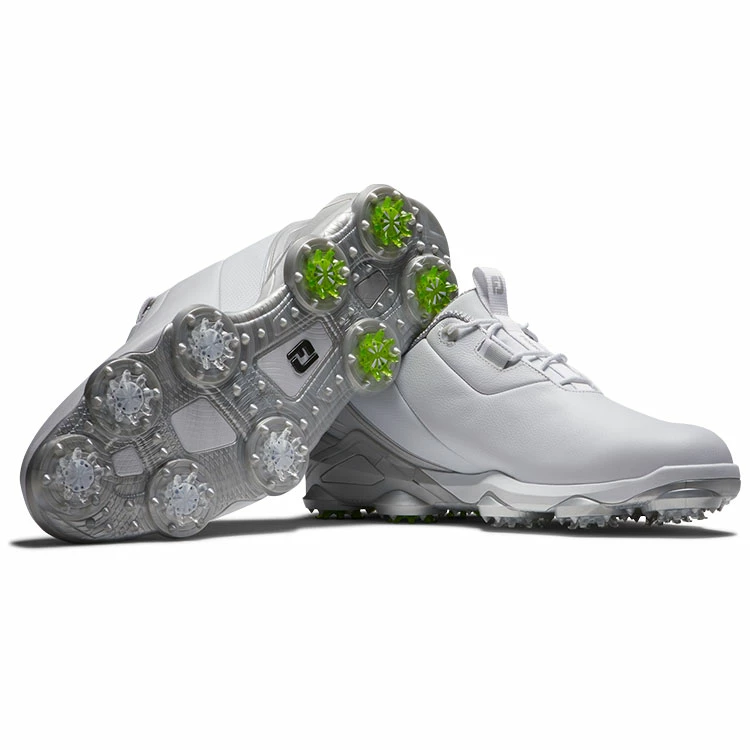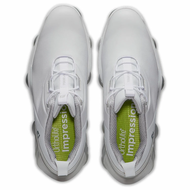 | FootJoy Tour Alpha 55505 Golf Shoes Ultimate Stability With New OPS Technology Introducing the Tour Alpha golf shoe from FootJoy. Delivering the ultimate in stability with supreme comfort, featuring the game-changing Optimised Performance Stabiliser technology. The Optimised Performance Stabiliser is a three component innovation that locks in the golfer’s foot to deliver superior feel, unrivalled traction and optimised power. The 3D moulded heel provides a stiffer, lighter, and aesthetically interesting rear structure that provides lower Achilles support and locks the heel into place during the swing. The FTF+ Dual Durometer midsole varies in softness offering a combination of comfort and performance. The soft midsole supports the foot with comfort while the firm heel centres the back foot for controlled balance during loading in the swing. The A-frame is an external TPU structure that fuses the heel counter and the midsole together to create synergy within the OPS and deliver ultimate stability at every stage of the swing. The shoe boasts a wider cleat positioning with Launch Pod Technology to maximize ground force, something that is key for creating power with control during the swing. FJ Launch Pods with Power Plate in the heel and forefoot deliver tour-calibre stability. Finished off with the Ortholite Impressions Fitbed which offers exceptional comfort, and a premium Pittards ChromoSkin leather that provides a soft feel with premium look and waterproof protection. The Tour Alpha also boasts waterproof protection and comes with a 1 year waterproof warranty. Experience the ultimate in stability and comfort from the #1 Shoe In Golf. |