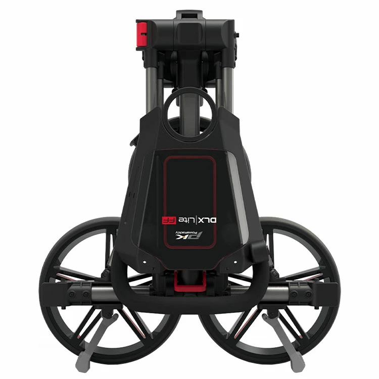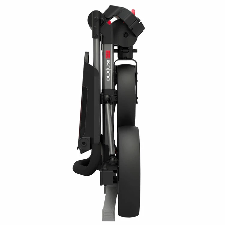 | PowaKaddy DLX Lite FF Golf Trolley Exceptional Storage With Innovative Flat Fold The DLX-Lite FF Trolley has been cleverly designed with optimum storage in mind. The simple folding and unfolding system allow it to be folded down flat to give slimline compact storage. The innovative flat fold design provides unique options for the storage and transportation of your golfing gear. Constructed from a lightweight aluminium frame and designed to glide over any terrain thanks to the large sports wheels. The ergonomic handle adjusts to suit your height and the PowaKaddy key lock system stops your golf bag from twisting. Featuring a large scorecard holder, drinks holder, umbrella holder base, storage compartment, ball holder, tee holder and parking brakes on both wheels to secure the trolley in place when not in use. |