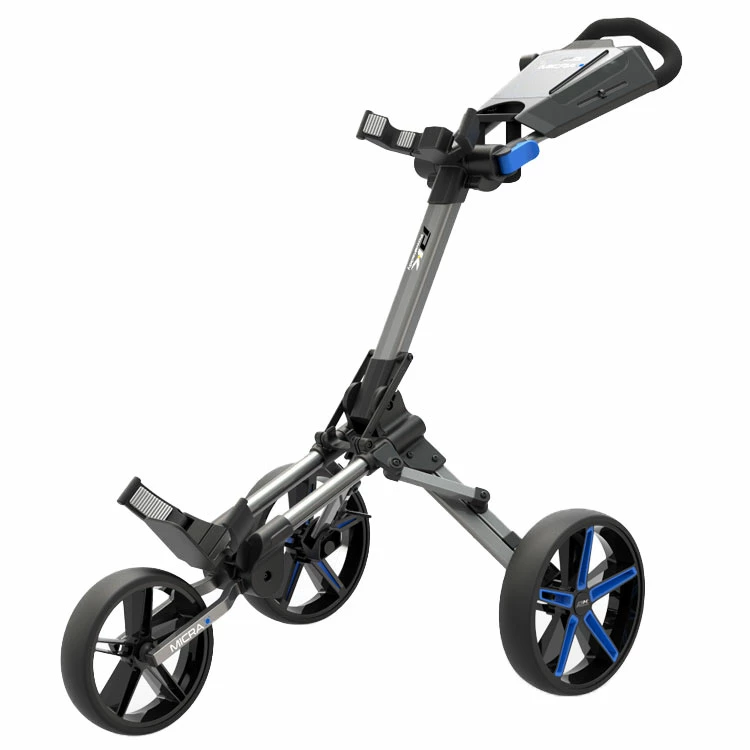 | PowaKaddy Micra Golf Push Trolley Lightweight Design With Quick Fold System The new PowaKaddy Micra is a stylish lightweight and compact push trolley with a simple folding and unfolding mechanism. The clever two-step folding system ensures the Micra folds down compactly to fit into the smallest of spaces. Perfect for when you need that extra room. The compact 3-wheel design and wide wheelbase make pushing or pulling effortless whilst providing extra stability when going over uneven ground. An easily accessible foot operated parking brake ensures your trolley stays in place when you’re playing your shot. The PowaKaddy Micra is packed with a host of features including a dedicated soft lined water-resistant mobile phone storage area and an ergonomic soft touch handle for handle height adjustment. The generous sized multi feature handle comes with a scorecard holder, pen/pencil holder and storage for your golf balls and tees. |
