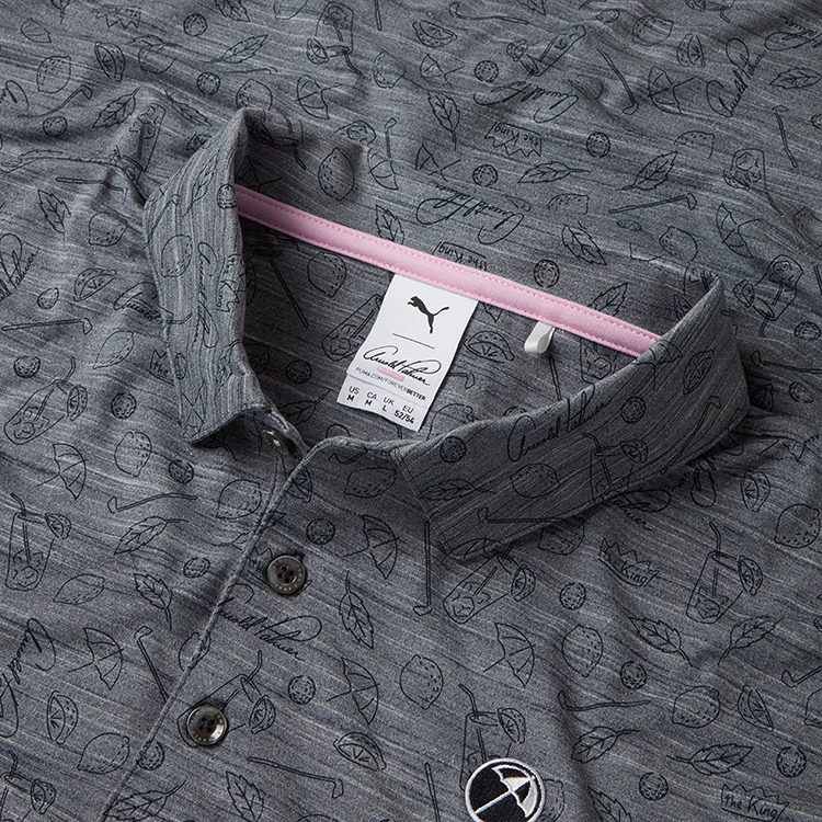 | Puma AP Cloudspun King Golf Polo Shirt Special Collection In Homage Of A Legend The Puma x Arnold Palmer Collection is inspired by the style, life, and career of a true legend. The internal neck print features iconic moments in Mr. Palmer’s life both on and off the course. Made from 94% polyester and 6% elastane, the AP Cloudspun King Polo Shirt is designed to offer maximum ventilation and comfort on those warmer days. With DryCELL technology that provides a moisture wicking finish, this polo is an all-round technical shirt that will keep you dry and smelling fresh. Finished with a self collar, graphic print detail and a signature Arnold Palmer umbrella logo on the left chest for added style. Puma golf polo shirts offer the perfect combination of garment technology with a modern sporty design. |