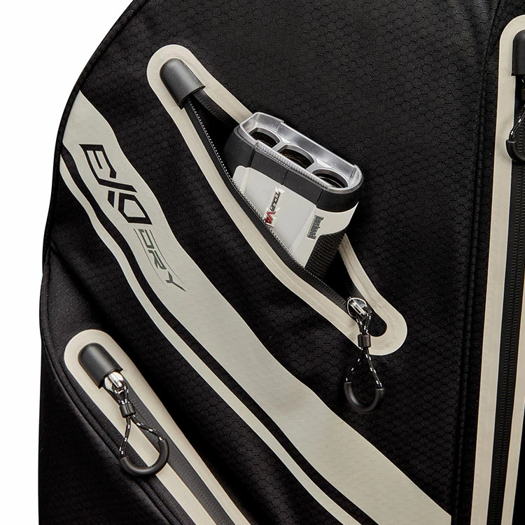 | Wilson EXO Dry Golf Cart Bag Fully Waterproof With Maximum Organisation The new Wilson EXO Dry cart bag has a premium, modern design for the trolley bag player who requires great features with club organisation and waterproof performance. The EXO Dry bag features a 14 way divider top with 14 full length dividers, enlarged putter section for thicker grips and a range of 9 pockets. The pockets include a Dry Tech valuables pocket to keep you belongings dry along with a large cooler pocket for your food and drinks. With 2 molded handles and cart strap channel, the EXO Cart bag is a premium performer for the serious golfer. |